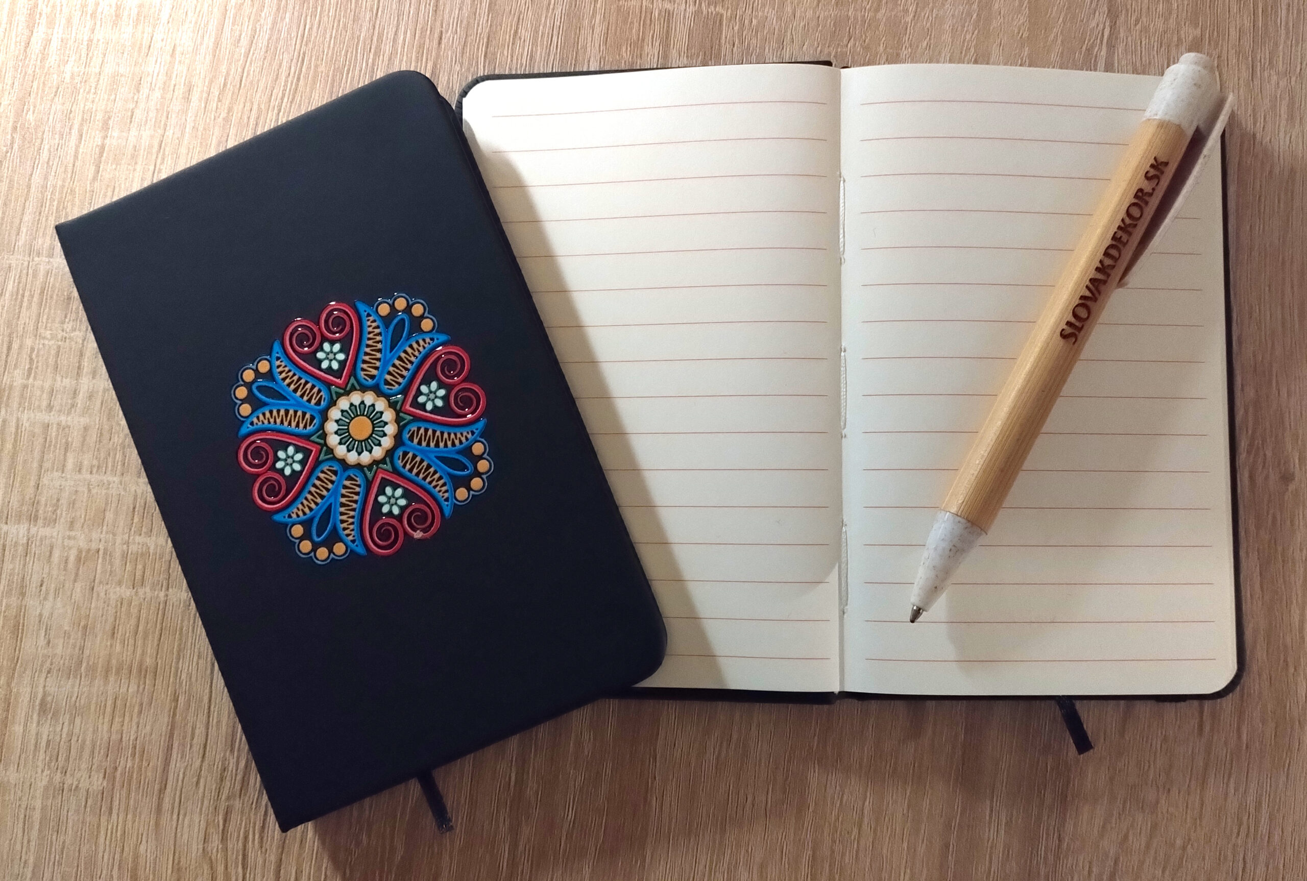 Potlač je realizovaná UV digitálnou tlačou, ktorá zaručuje dokonalý vzhľad a sýte farby. Navyše potlač je chránená lakom, ktorý vytvára 3D efekt a chráni tlač pred oderom a vyblednutím farieb. Zápisník s pevnou obálkou čiernej farby.